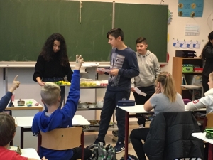 Warum sollen eigentlich nur Lehrer unterrichten? Das können doch auch Schüler! Das hat sich auch die Klasse 8d gedacht und hat der Klasse 5b ein gesundes Frühstück zubereitet. Vielleicht fragen sich jetzt manche: „Aber was lernt man denn dabei?“ – Wir erzählen’s euch: